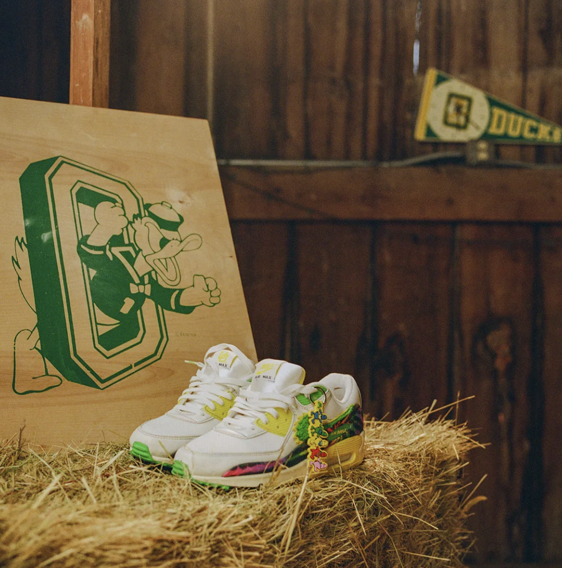 Air Max 90 — идеальный выбор для такого союза. Эта модель, созданная Тинкером Хэтфилдом (тоже выпускником Орегонского университета), сама по себе является частью истории региона.