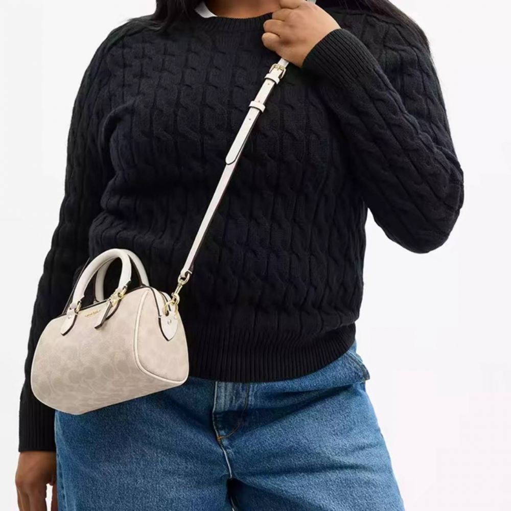 Элегантная и компактная сумка Coach Rowan 18 Bag создана для тех, кто ценит стиль и функциональность в мини-формате. Выполнена из натуральной кожи с мягкой текстурой и украшена фирменной фурнитурой в золотистом оттенке. Основное отделение вмещает телефон, кошелёк и ключи, а внутренние карманы помогают удобно организовать мелочи. Съёмный регулируемый ремень и короткие ручки позволяют носить сумку в руках, на плече или через плечо. Глубокий бордово-вишнёвый оттенок придаёт образу выразительность и элегантность, сохраняя фирменный стиль бренда Coach.