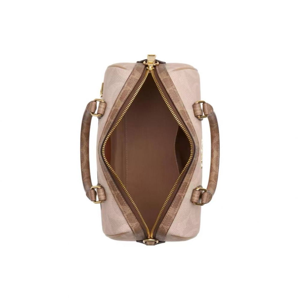 Элегантная и универсальная сумка Coach Rowan 25 Bag сочетает культовый дизайн и фирменное качество бренда Coach. Выполнена из прочного покрытого холста с классическим монограммным узором Signature и отделкой из натуральной кожи. Просторное основное отделение и удобные карманы обеспечивают комфортное хранение повседневных вещей. Двойные ручки и съёмный регулируемый ремень позволяют носить сумку в руках, на плече или через плечо. Тёплый бежево-коричневый оттенок придаёт образу утончённость, делая модель идеальной для любого случая — от офиса до прогулки.